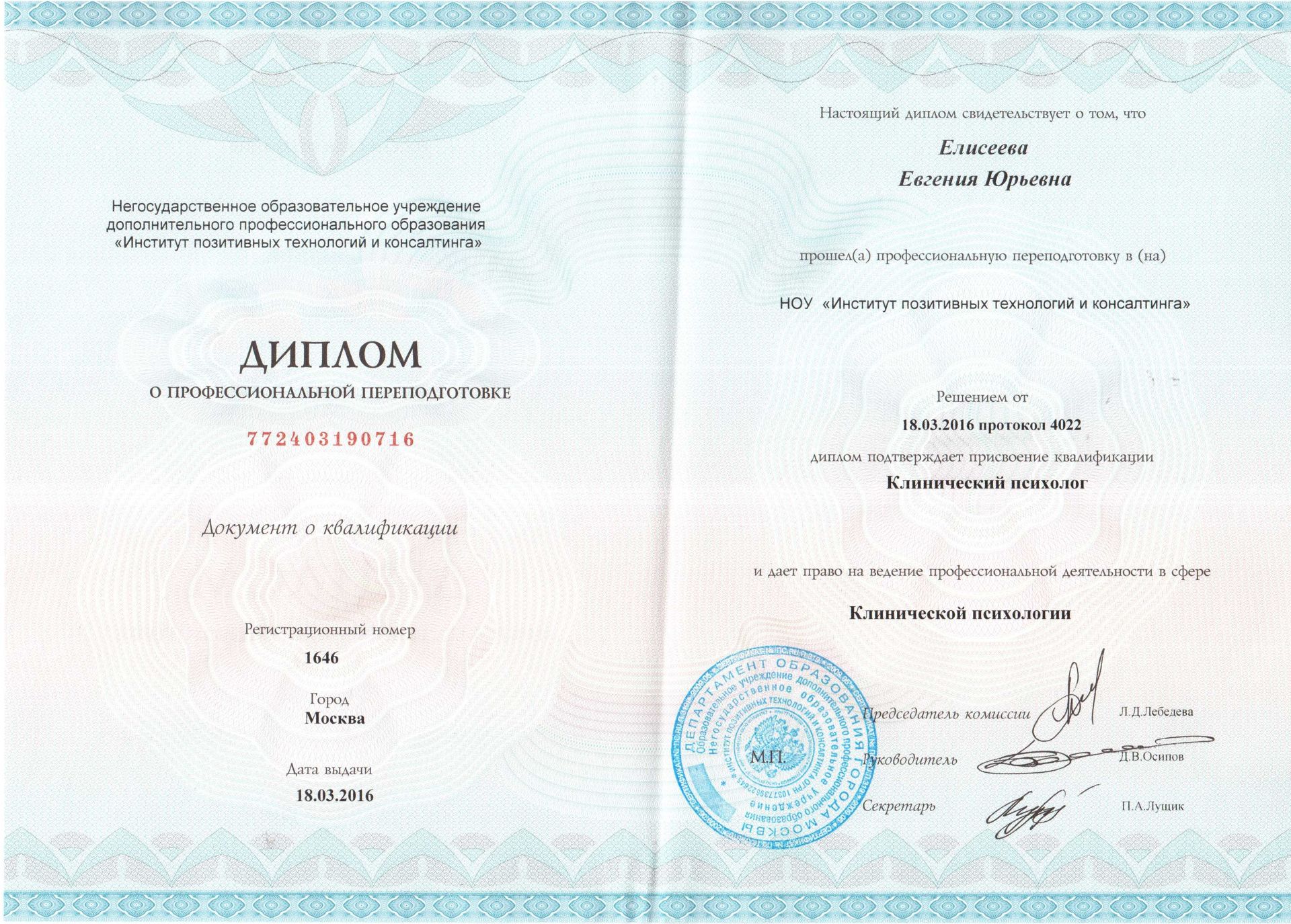 Клинический психолог с опытом работы более 20 лет