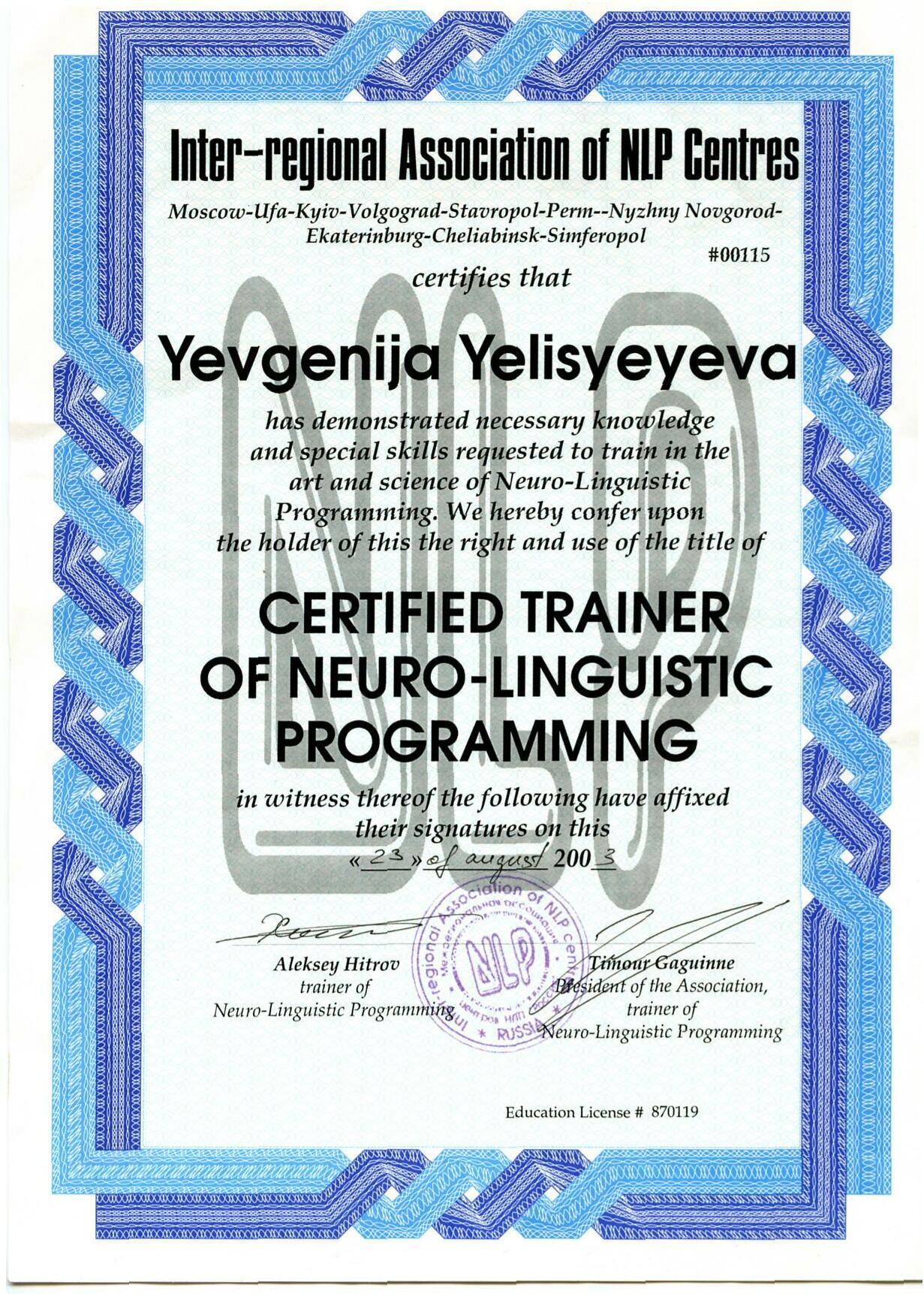 Сертифицированный Тренер НЛП, Мастер-Практик НЛП